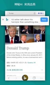 必应搜索引擎手机版是微软必应搜索推出的官方手机浏览器,本浏览器可以搜索图片、新闻、视频以及网络最新热点等,而且浏览器虽然小,但是功能一应俱全,真正的做到了必应搜索,有求必应!