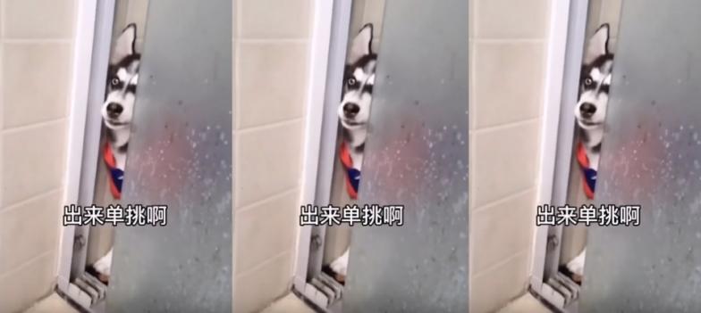 网上最火的是哈士奇在浴室里配音“骂人”的视频。