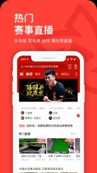 2、足球、篮球、羽毛球、乒乓球等体育赛事都可以在app内观看赛事直播;