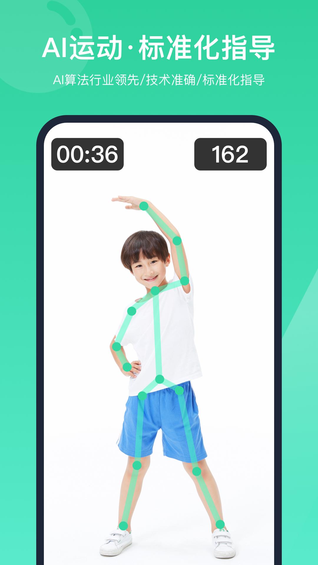 跳绳/开合跳/仰卧起坐/广播体操...等多种AI运动正确指导,帮助孩子坚持锻炼、规范动作,提升体质健康!