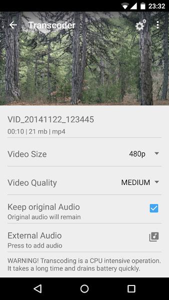 VidTrim是适用于Android设备的视频编辑和组织程序,包含多项功能,如修剪、合并、图像抓取、视频效果、提取音频(转换成MP3)和转码(压缩和转换为MP4)。您也可以直接通过应用程序与朋友分享您的视频。