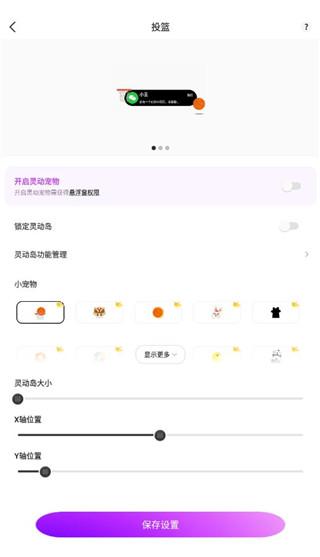 2、如果是灵动岛组件,用户可以自行设置灵动岛的大小,小宠物以及灵动岛的x轴和y轴的间距