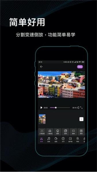 1、专为视频编辑用户需求定制的应用,丰富的功能和元素素材都能满足你,剪辑后也支持预览查看效果;