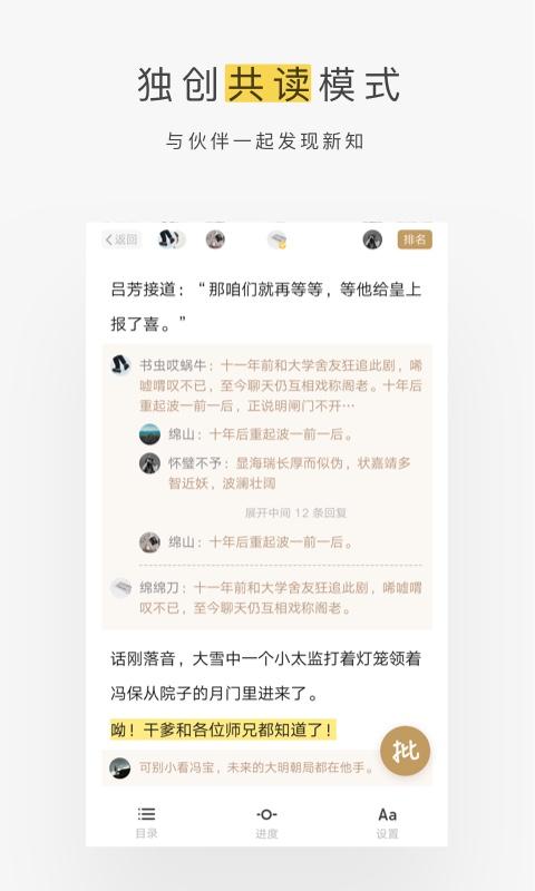 【全新的共读功能】新版本独创共读功能,让你可以和小伙伴一起组队看书、聊书;