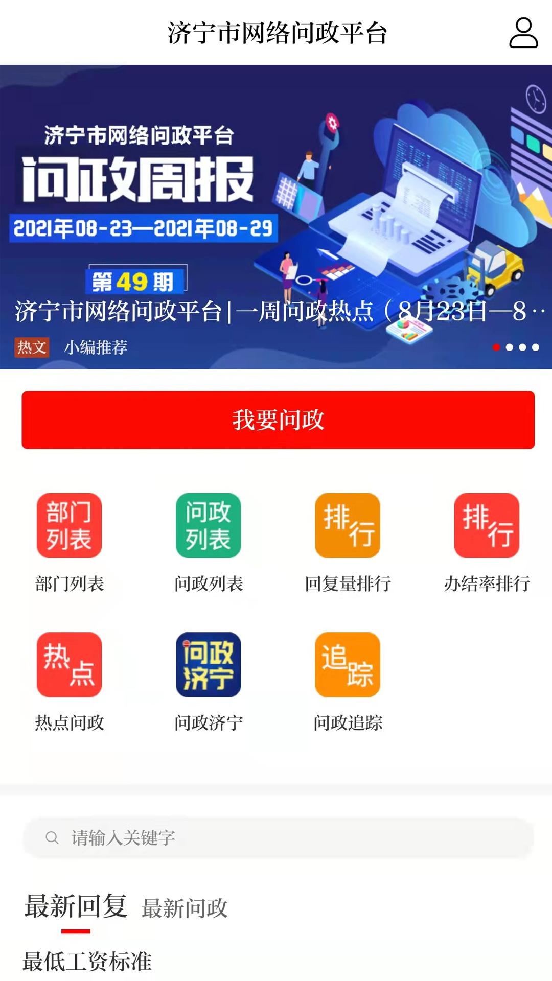 问政模块打通“济宁市网络问政平台”, 两者用户打通、数据共享、风格统一,不仅实现了用户随时随地掌上问政,并可通过客户端查询问政办理进度、评价问政办理质量。