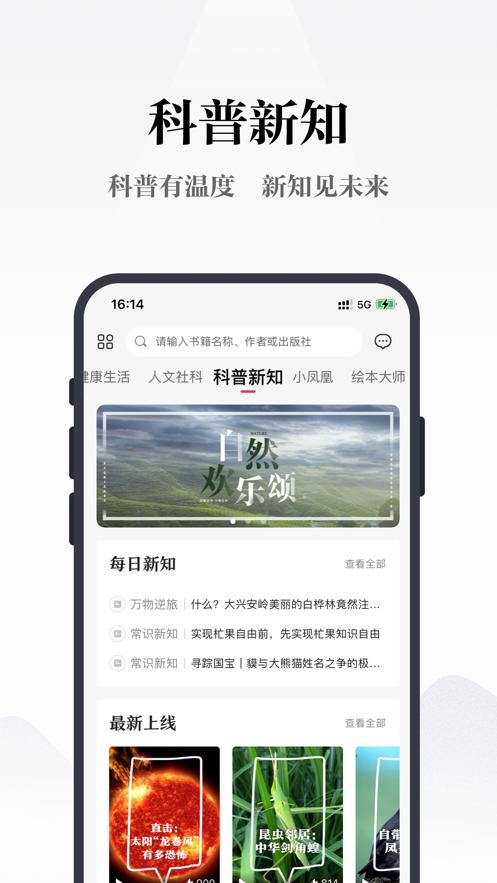 “凤凰书苑”以有声书、荐书、好书解读、音视频课程等多种介质为呈现方式。电子书及时传播凤凰出版精品图书资源。有声书专注用声音表现世界,种类多样,制作精良,扫码可听。