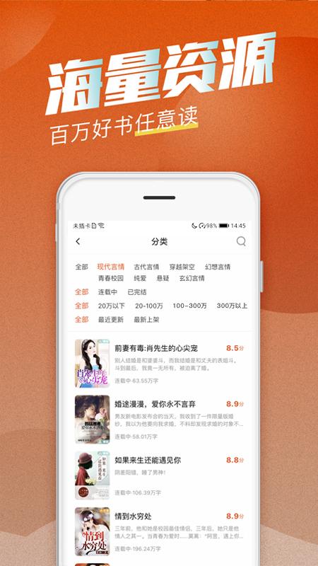 海读小说app下载官方版是一款功能十分强大的追书神器,在这里,超全书库,海量书籍,满足你不同的阅读需求,给你带来不一样的阅读体验!喜欢的朋友赶紧来下载体验吧