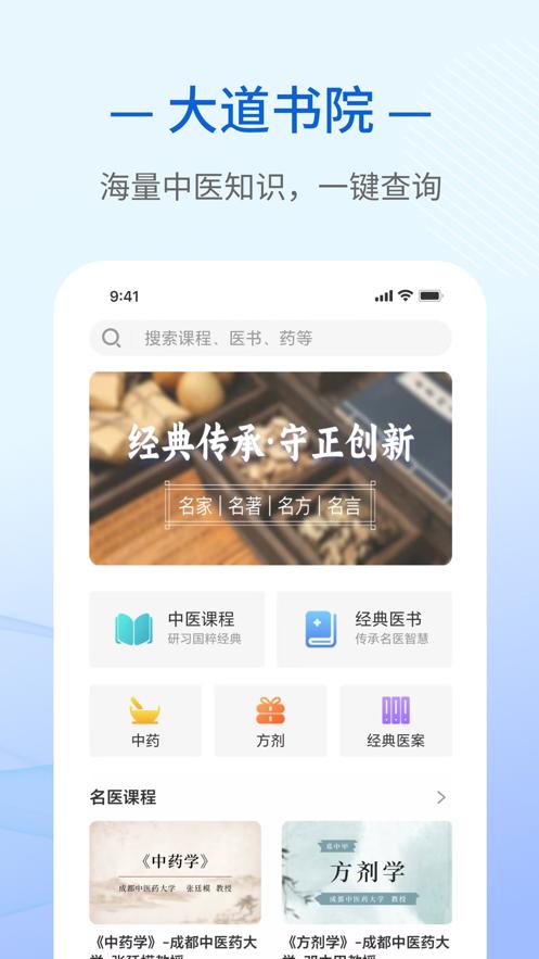 【大道书院】一键搜索中医课程、医书、中药、方剂和医案,在线学习中医新模式,一边学一边用,海量课程,无限更新,随时可查,随时可学