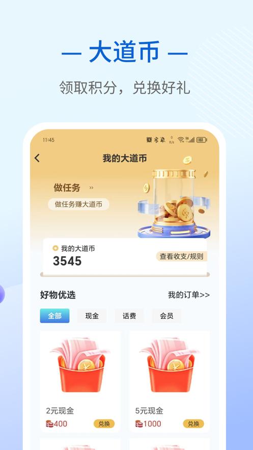 【大道币】积分领不断,好礼兑不停。用户可在大道领取大道币,前往商城进行礼品兑换