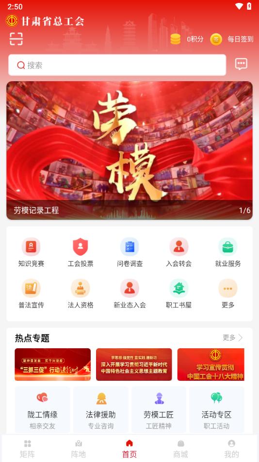 陇工惠APP下载是甘肃省总工会官方倾情推出,软件拥有首页,矩阵,阵地,商城,我的等等功能板块,可以帮助更好的服务甘肃省职工会员。