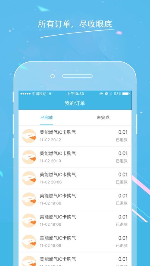 3. 雁过留痕。每笔订单记录,无需翻阅纸质账单,就能查阅所有往期燃气使用记录。