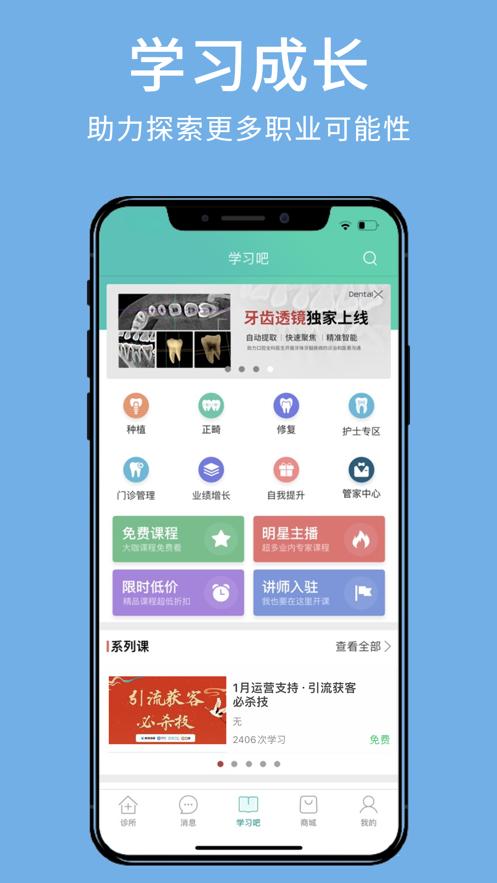 专业讲师入驻,涵盖种植、正畸、门店管理、业绩增长等八大板块课程。