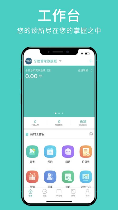 牙医管家手机版下载是一款口腔数字化管理系统,软件拥有多诊所管理,统计,我的工作台,消息,学习吧等等功能板块,可以帮助口腔机构更好的办公和管理。