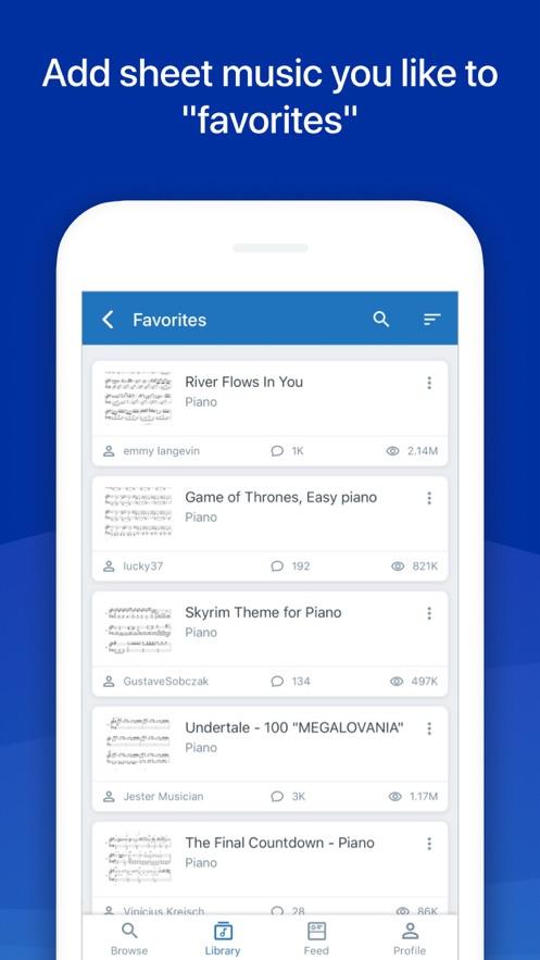 • 将乐谱添加到收藏夹以轻松访问它们。