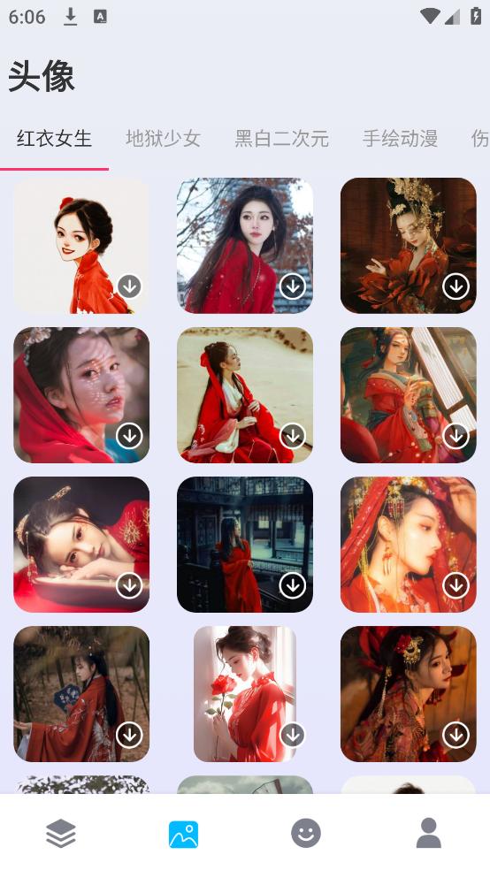 还将不同风格类型的头像资源分类,让用户可以轻松查找自己喜欢类型的头像。