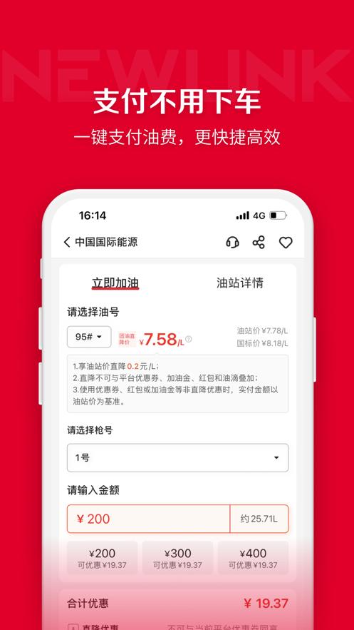 优惠加油便捷充电,都来用团油。团油覆盖全国约1800个城镇、数万座加油站,连接全国6.2万座充电站、65.2万把充电枪,为每一位车主提供优惠的加油价格,和便捷的充电体验。