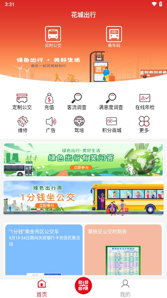 花城出行app是一款智慧出行移动平台,平台拥有扫码乘车,实时查询,在线充值,线上年审等等丰富功能,可以帮助用户更智慧攀枝花出行。