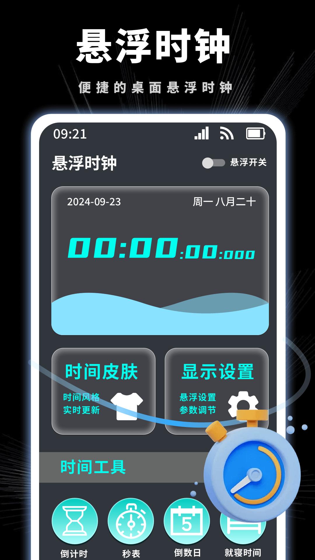 3、悬浮时钟: 用户可以将时钟显示悬浮于任意应用程序之上,随时随地查看时间。
