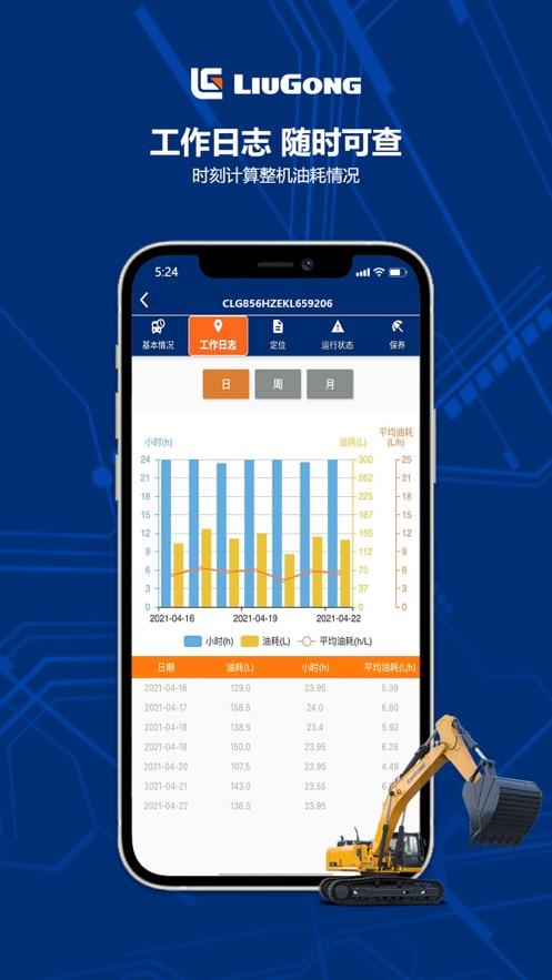 柳工智能管家供您查询整机位置信息、整机作业信息并提供数据分析内容及结果,