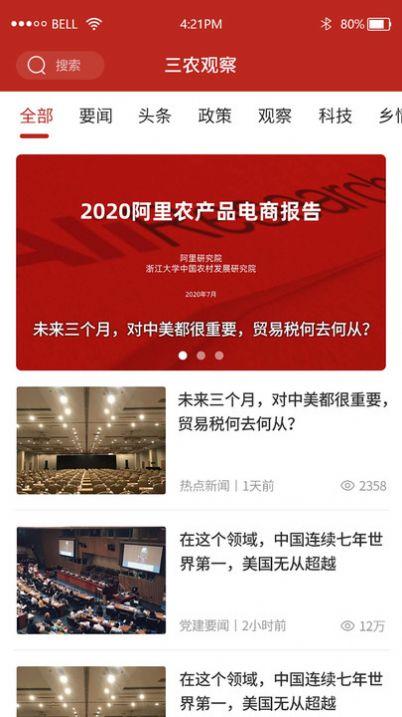 1、“三农观察app”聚合全国各地农业信息,一站式提供三农新闻资讯。