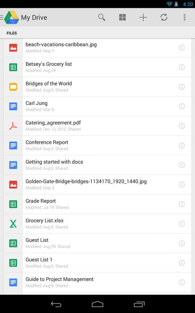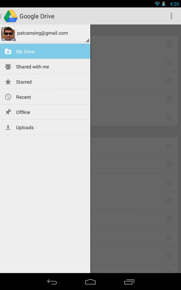 7、现阶段,Google Drive已发布安卓客户端,在app客户端还可以进行如PC端操作,仅仅作用略微减缩。