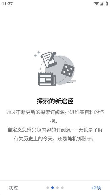 “探索”可让您查看推荐的 Wikipedia 内容,包括时事、热门文章、迷人的免费许可照片、历史上这一天的事件、根据您的阅读历史推荐的文章等等。