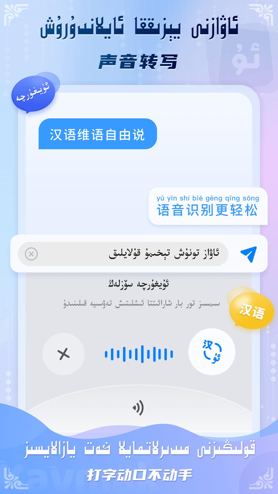 Kaymak维语输入法,支持维汉输入,简洁好用打字快,语音转写准确,屏幕翻译便捷,还有海量个性的键盘主题,萌趣的表情包,维汉输入和维汉翻译结合,更实用更有个性。