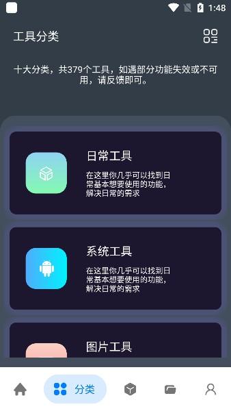 一个汇集了超多功能的手机工具,该软件目前已经有了300多个工具,包括日常、图片、文字。查询、系统等多种工具,开发者的目标是1000款工具,现在还在继续更新中。