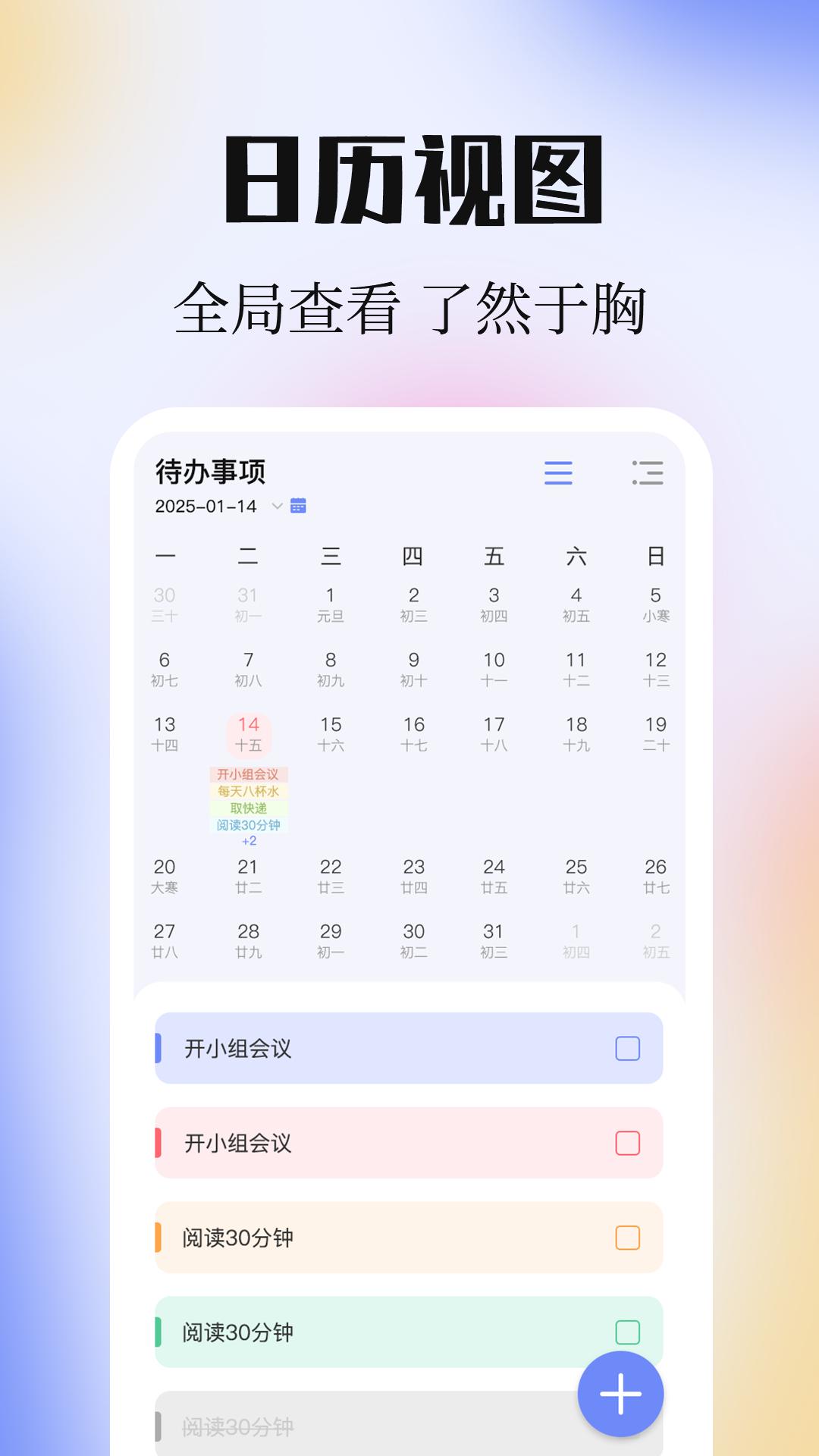 计划ToDoList清单官方版是一款非常好用的生活计划安排工具软件,这款软件可以帮助大家轻松的对生活行程进行计划安排,有着日程详细信息设定,挑选实际的時间闹钟提醒避免错过重要事务,有需要的小伙伴快来本网站下载使用起来吧。