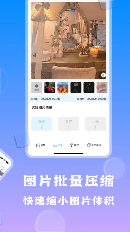 多样化图片压缩规格,可自行选择优秀、良好或一般进行压缩,便捷高效;