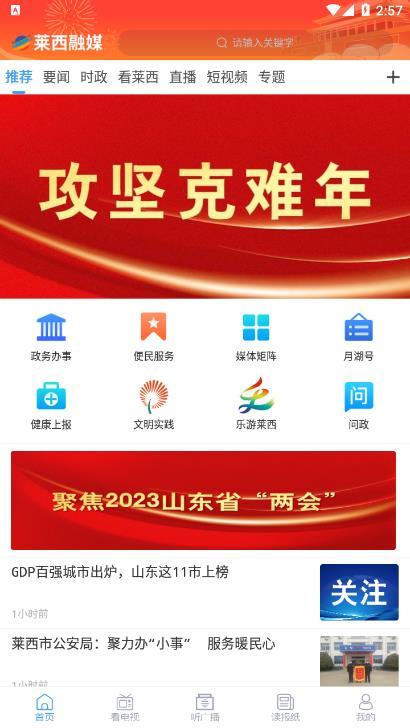 这是莱西市融媒体中心承办并重点打造的新媒体传播平台。集电视视频、新闻资讯、政务信息、社会热点、生活服务等于一体,用户可以在平台上享受电视广播直播、点播和回看服务,阅读电子报纸、参与直播互动,满足随时随地观看电视、了解信息、互动爆料的需求。