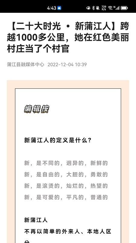 蒲江发布”APP为蒲江市民提供内容丰富、形式多样、精准服务的新闻资讯。