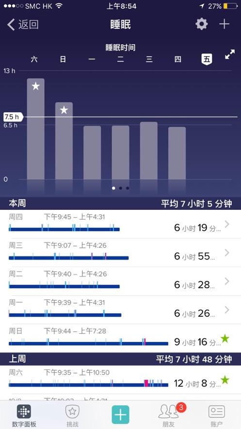查看您的睡眠情况:在应用程序中设置睡眠目标,并使用 Fitbit 智能设备监测每晚清醒、难眠和酣睡的时间。