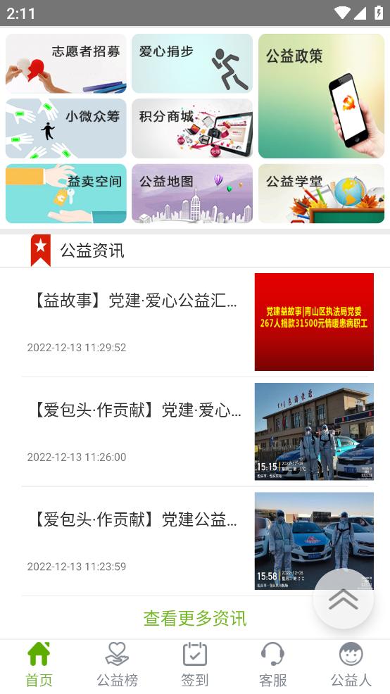 3.资询随时随地:查询全新公益资询,掌握政府部门公益现行政策,阅读文章政府部门工作总结报告。