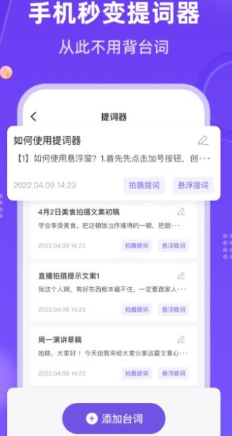 1.不用再死记硬背的去记一些台词,在拍摄视频的时候只需要使用这款软件就能够让你更好的进行录制。
