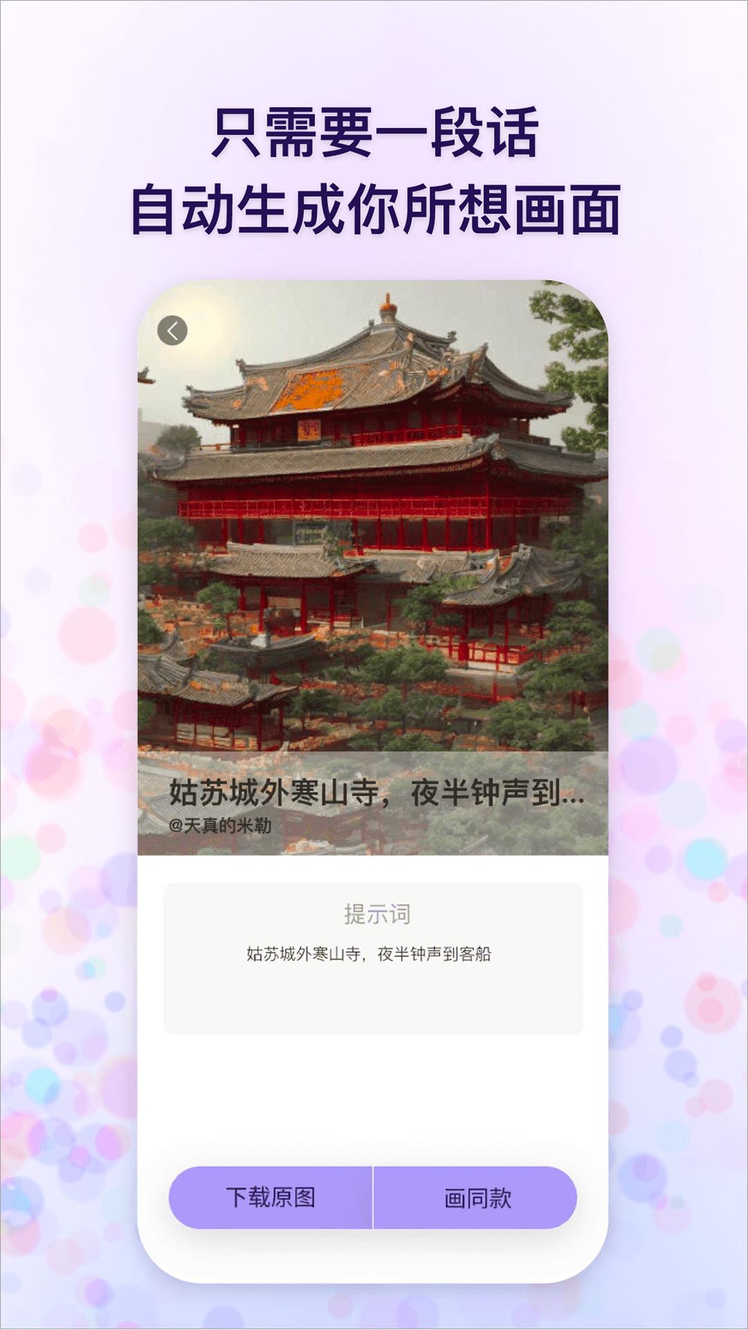 1.这款软件进行AI绘画都是非常的方便,只需输入关键词就可以绘画;