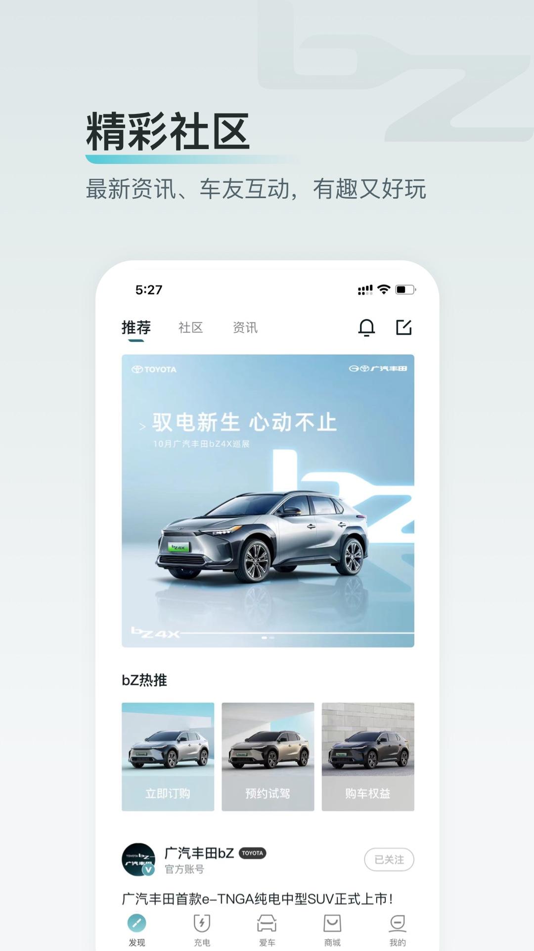 广汽丰田bZ APP是专为bZ用户量身打造的,集看车、购车、车生活于一体的一站式服务平台。在上面你可以浏览有趣好玩的内容、使用方便快捷的充电及车主服务、体验科技新潮的车联网功能等。为每一位用户提供流畅、愉悦、便捷、安心的使用体验,是平台不懈的追求。