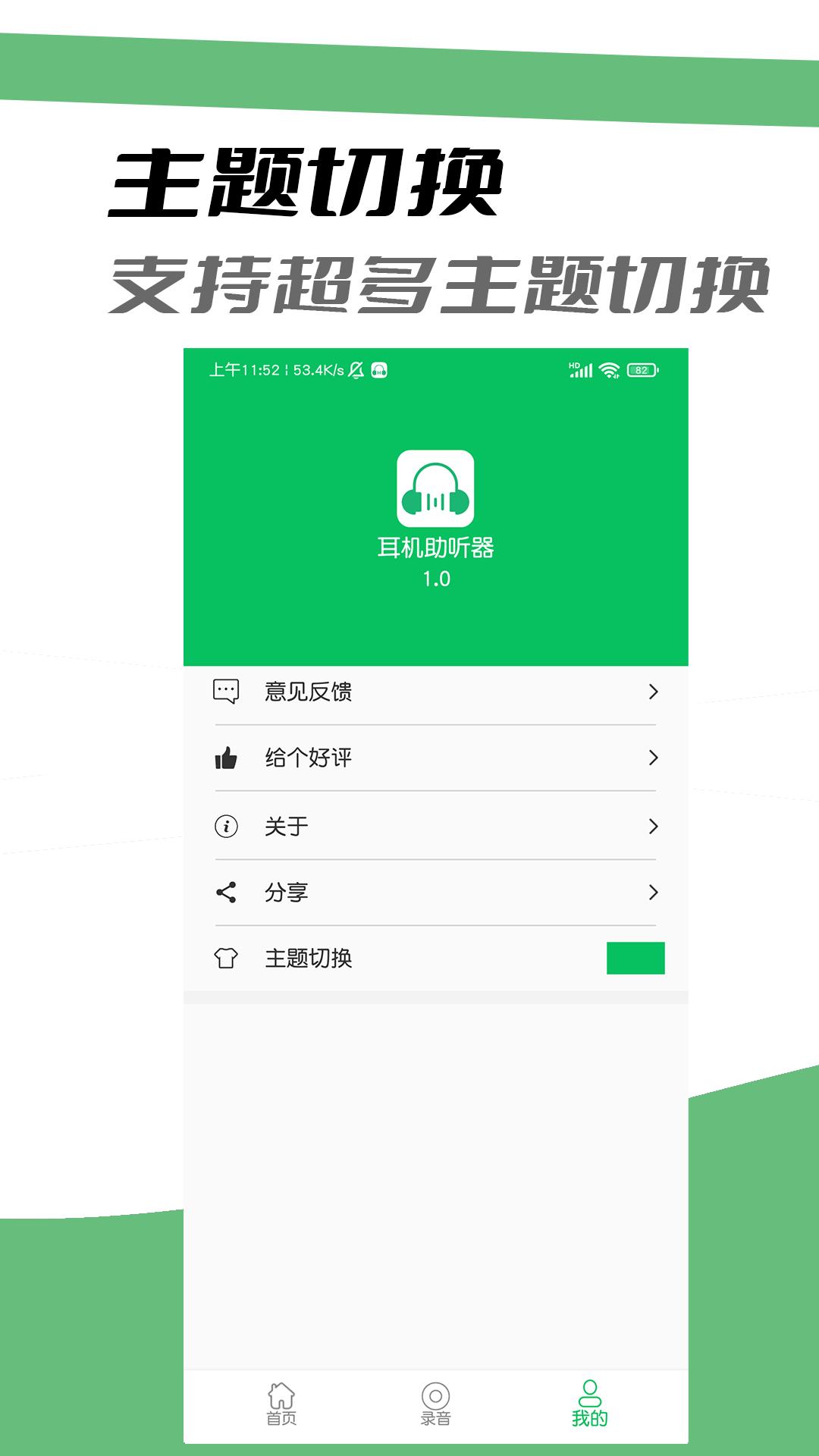 耳机助听器是一款可以将您的蓝牙耳机变成助听器的软件。让大家可以使用这款软件轻松的进行声音的放大,还可以轻松的进行音量调节等,超多的功能满足你的需要,还能进行录音记录和声音增强等,界面简洁,操作简单,还可以更换主题,让用户可以更加轻松的体验各种功能。