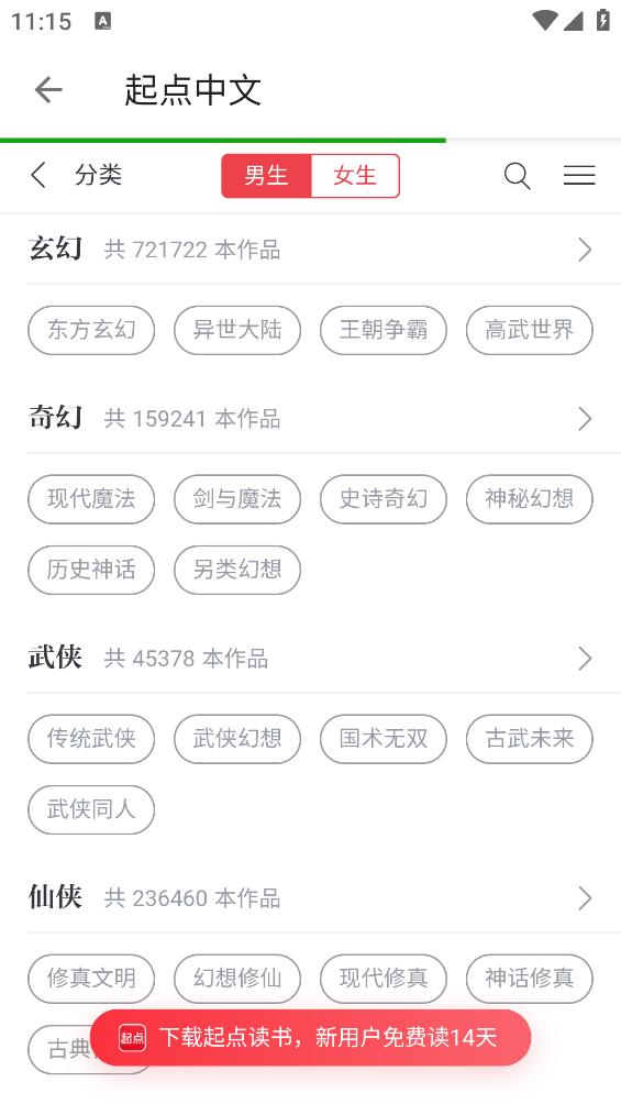 3.书库推荐,可以根据分类发现有兴趣的书籍。