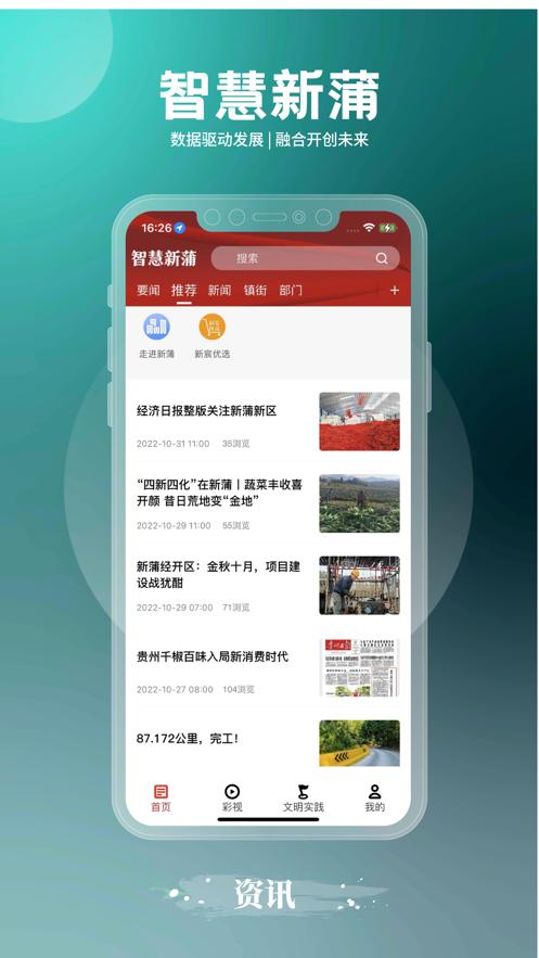“智慧新蒲”是新蒲新区融媒体中心、新蒲新区文明实践和志愿服务指导中心融合平台,形成了“一体策划、一次采集、多元生成、多渠道传播、全方位覆盖”的媒体融合传播新格局,提供新闻资讯、文明实践以及政务、商务、民生服务,实现“新闻+政务+服务+商务”的目标。