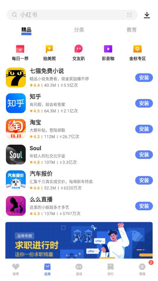 汇集了海量的各类应用程序,你所需要的软件和游戏在这里面都有。直接搜索名字就能轻松找到自己想要的。各种不同的榜单每天都会更新,让你发现宝藏应用,为你的生活带来更多的方便。