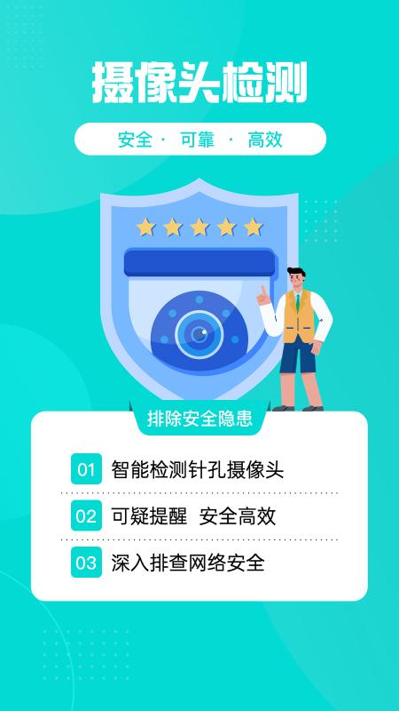 监测摄像头是一款实用便捷的反偷拍软件。用户可使用监测摄像头检测当前环境下是否存在隐藏摄像头,防止个人隐私外泄。