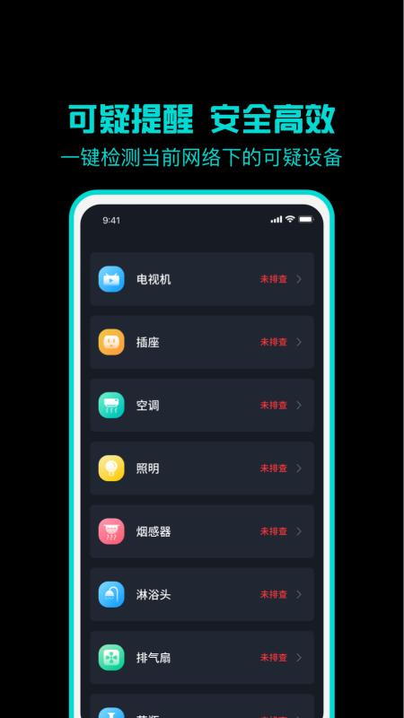 如果您去住酒店,民宿,或者出差旅行,搬新家,约会等,通过摄像头检测软件可以快速检测出私密场所同wifi网络环境下的所有设备,可以查找电视机,插座,空调,照明,烟感器,淋浴头,排气扇,花瓶等地方隐藏的摄像头,是一款保护个人隐私的必备软件。