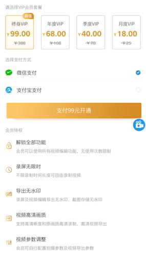 开通VIP就不限时间长度录制了,99元就可以开通永久。使用频率高的用户可以直接购买永久。