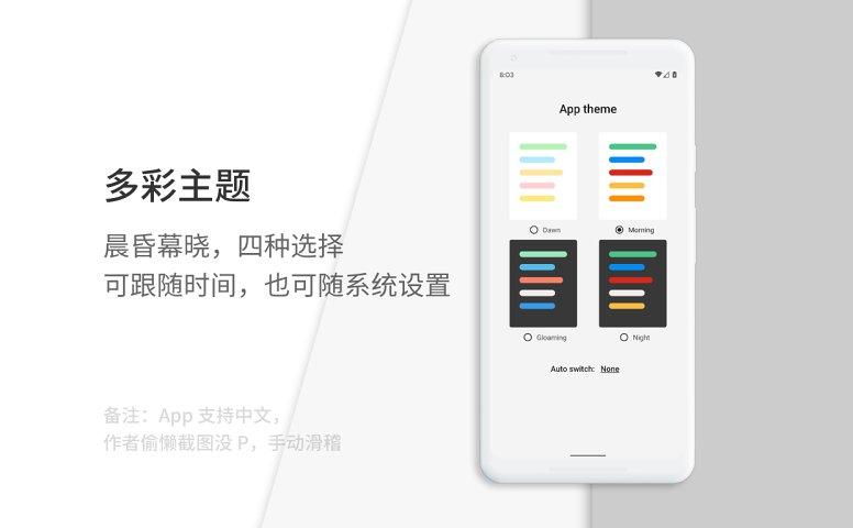 支持设置面容/指纹锁,设置保存时间,支持深浅色主题,可随系统或按时间自动切换。