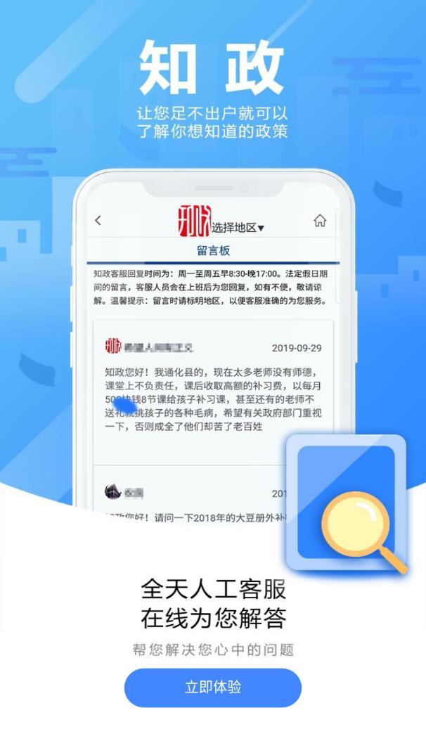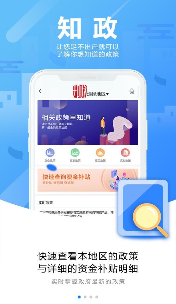 知政APP,是一款集普惠政策宣传、惠民补贴查询、政务问题咨询解答、政务事项在线办理等功能于一身的综合性移动政务服务手机软件。目前,已开通吉林省通化市“通·通办”、辽宁省大连市“智慧村社”服务等,为百姓与政府之间搭起智慧政务的数字化桥梁,成为百姓的“掌上政务管家”。