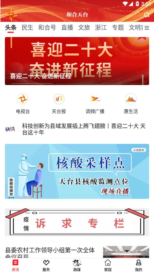 和合天台app是专为天台县制作的融媒体移动平台,平台拥有新闻资讯,服务,融媒,家园等等功能内容,可以帮助更好的引导及服务天台县。