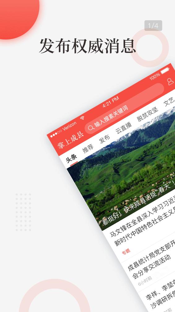 “掌上成县”下设好几个版块,包含成县重要新闻、梦幻仙境成县、乡村振兴、新闻事件、扶贫攻坚、成县土特产等,包括视頻、声频、文图等形式多样,是宽甸地域唯一一个手机端综合型权威性信息发布平台、方便快捷综合服务平台、联系群众服务平台。