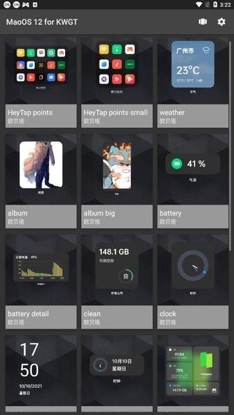 MaoOS 12 for KWGT手机版是一款非常好用的手机组件插件软件。软件内有超多的实用小组件,用户可以自由选择,一键轻松下载使用,非常的好用,喜欢的用户快来下载使用吧。