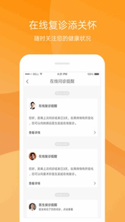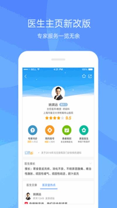 ※在线问诊:实现患者与名医的远程沟通、在线诊疗,极大提高就医效率,正所谓足不出户看名医。